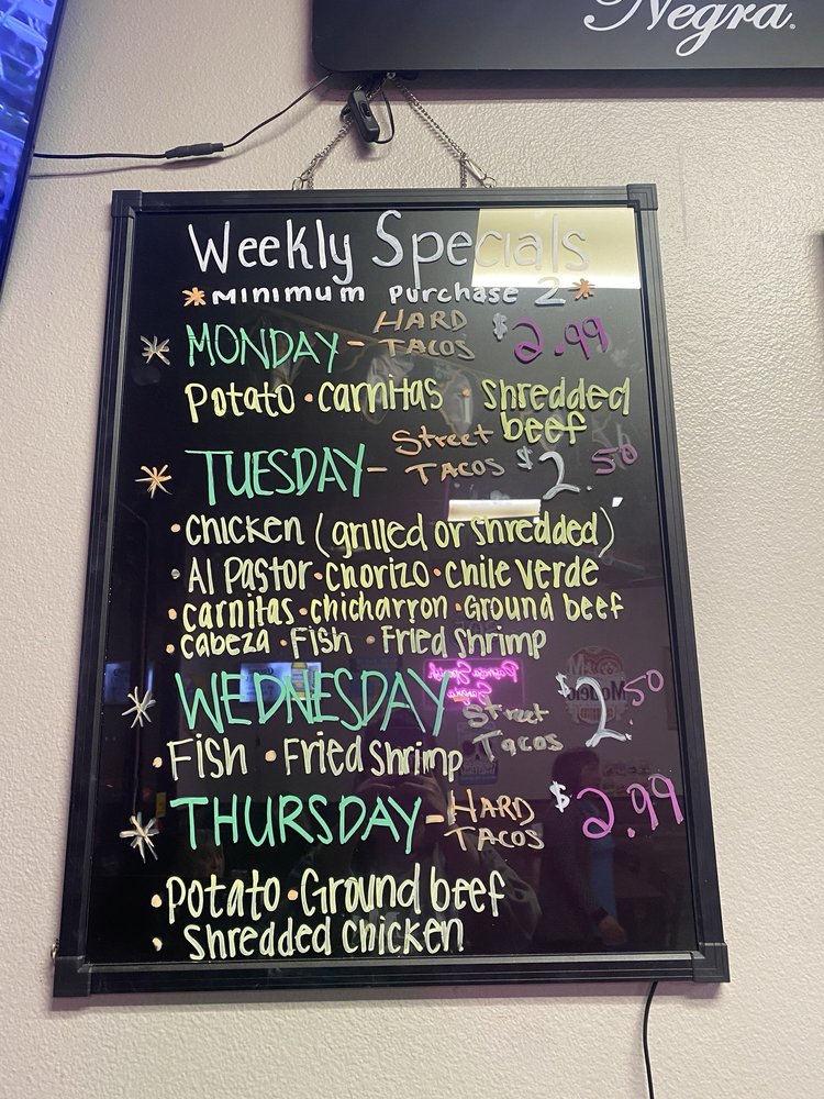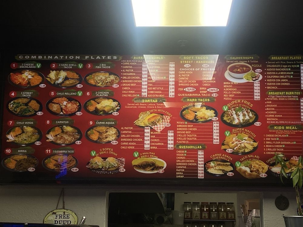 La Bamba Tacos And Beer is a vibrant fast-food spot and beer bar in Murrieta, CA, offering a fusion of Mexican flavors and a fun atmosphere. With a menu catering to breakfast, brunch, lunch, dinner, and dessert, there is something for every craving. Whether you're in the mood for California Omelette or Chilaquiles Plate for breakfast, or Huevos a la Mexicana Plate for lunch, La Bamba has you covered. The drinks menu includes a variety of bottled waters, champurrado, and refreshing CocaCola options. For those looking for an alcoholic beverage, choices range from Bud Light to Michelob Ultra. The restaurant offers outdoor seating, drive-thru service, gender-neutral restrooms, and even a pool table for entertainment. La Bamba Tacos And Beer provides a lively dining experience where you can enjoy delicious food and drinks in a casual setting.